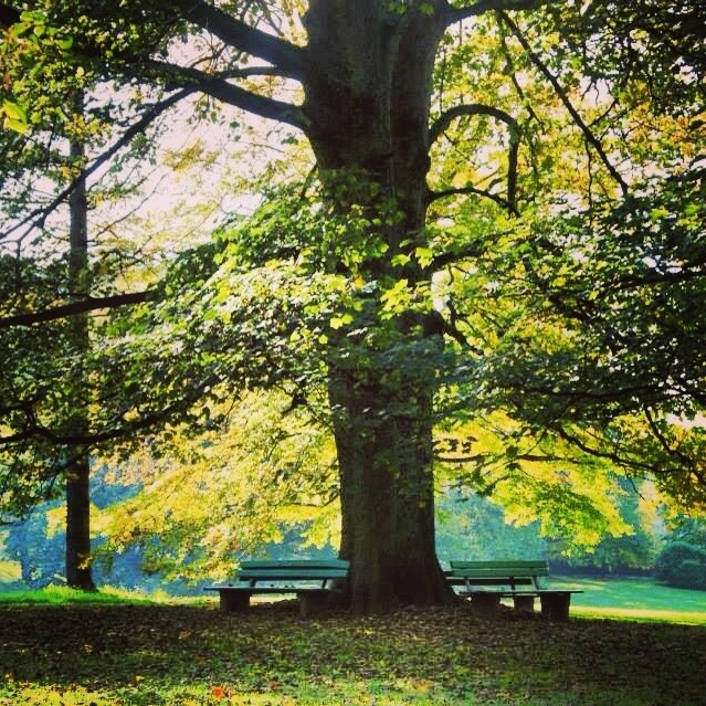 [ Smiles ] I LOVE this image of healthy-looking trees, the right amount of light and benches below.